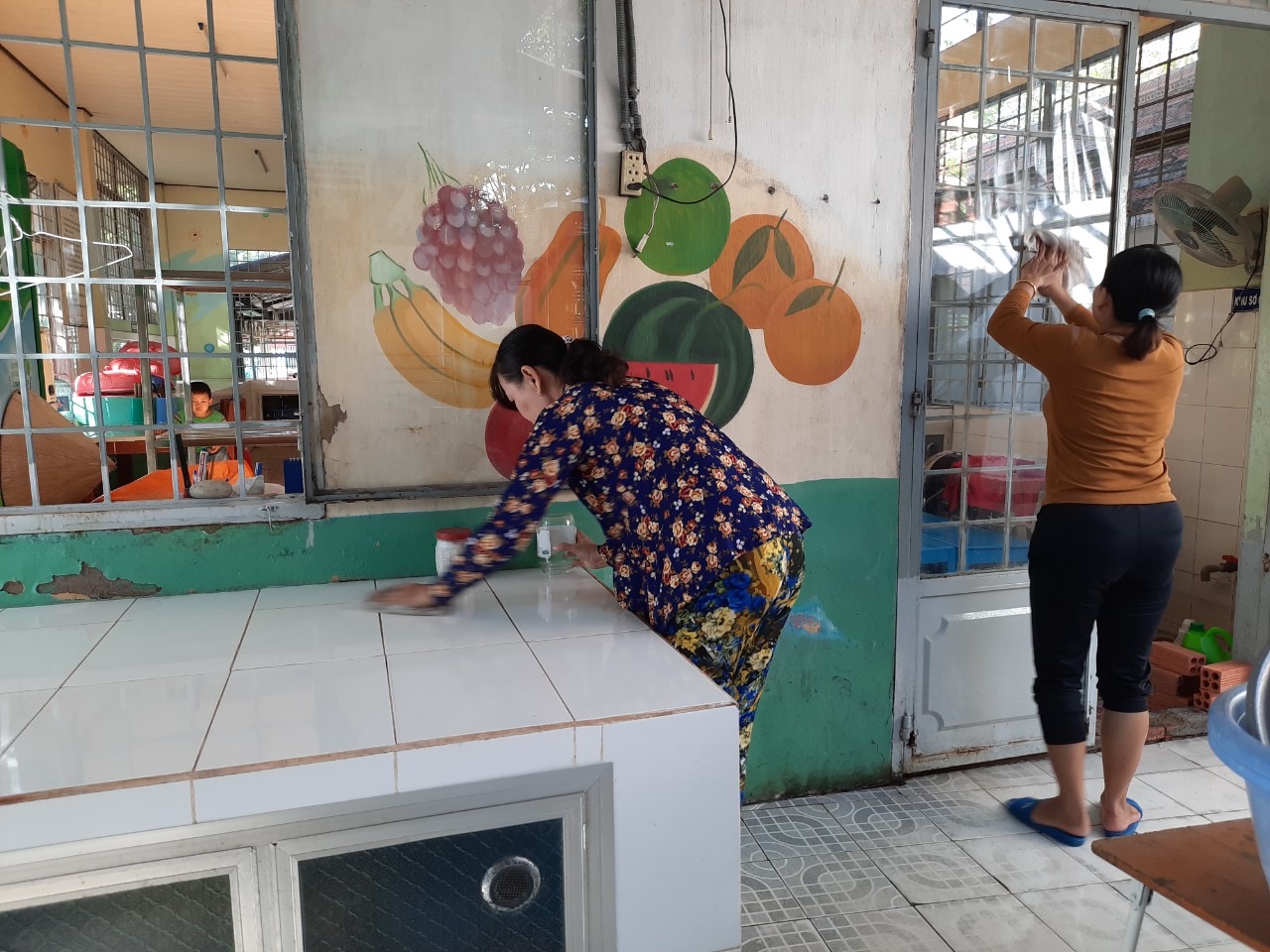 Để góp phần chung tay cùng cả nước phòng chống dịch corona ,toàn bộ cán bộ giáo viên nhân viên trường mẫu giáo Hoa Sen cùng ra sức tích cực dọn dẹp vệ sinh trong ngoài ,khử trùng phòng học , đồ dùng đồ chơi sạch sẽ theo đúng quy định của bộ y tế nhằm tránh việc ủ bệnh và phát tán bệnh trong tỉnh .